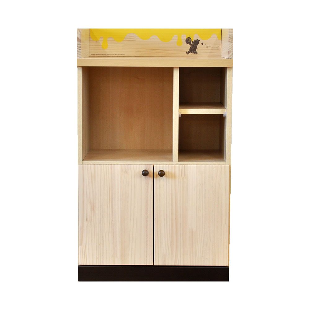 低学年は真ん中のオープンに、高学年の時は上の棚にランドセルを置くと丁度良い高さです。 横の棚や扉には文房具をはじめ、学校で使う道具を収納するとスッキリします。
