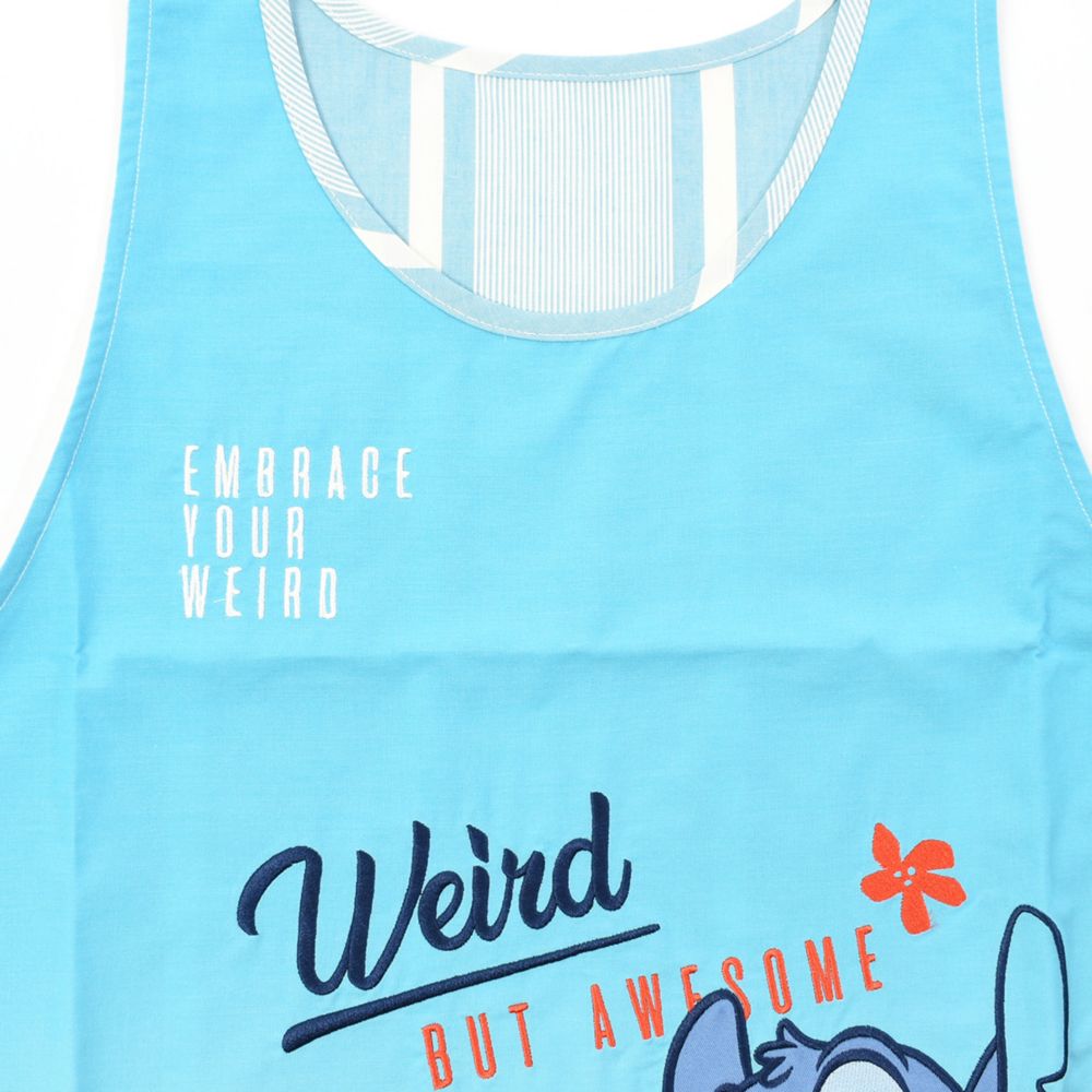 『リロ&スティッチ』に登場するスティッチ デザインの大人用カバーエプロン。