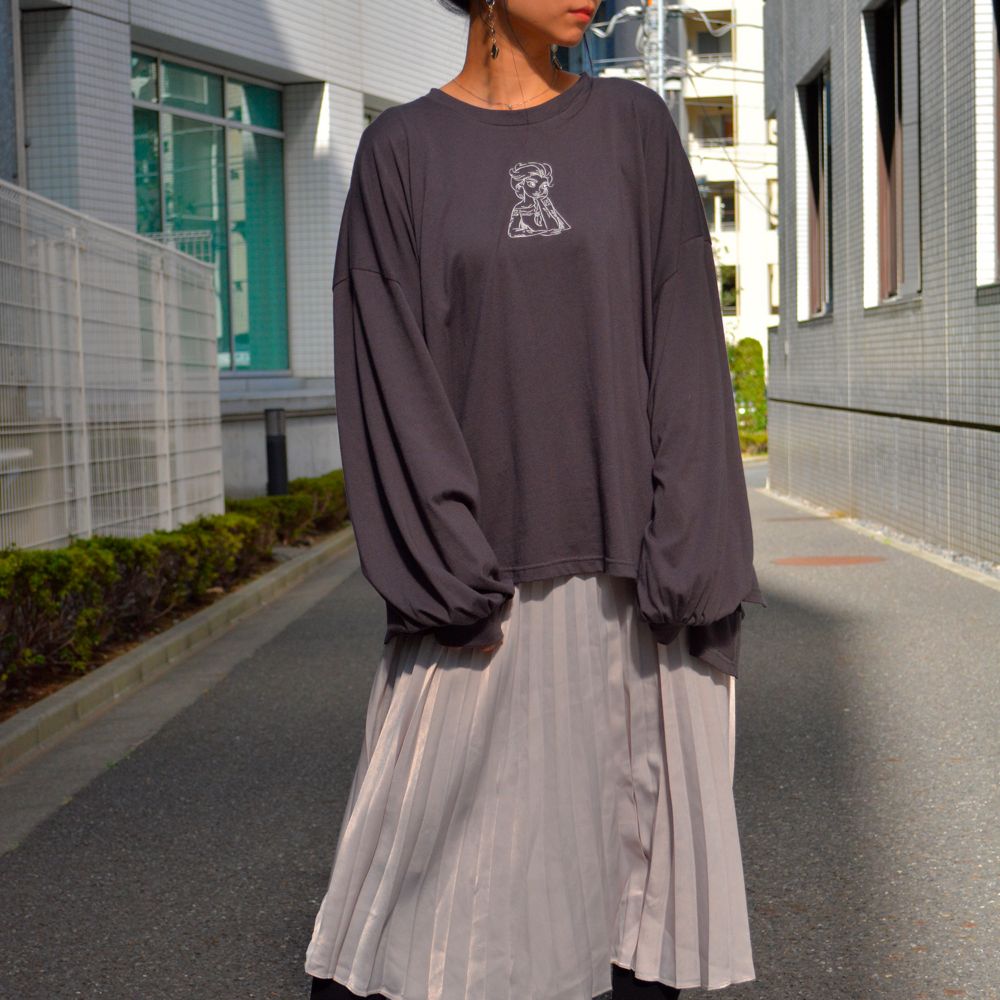 「エルサ」デザインの刺繍がフロントにあるビッグシルエットのロングスリーブトップス。