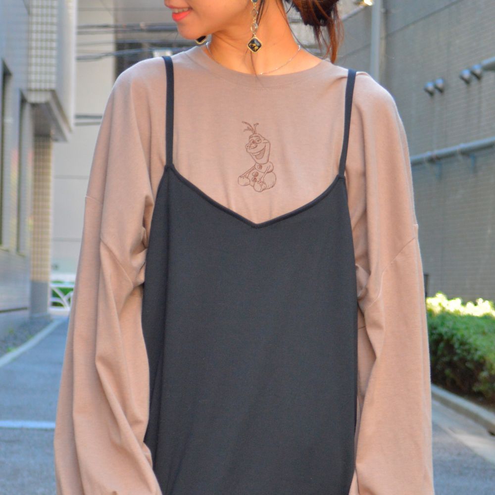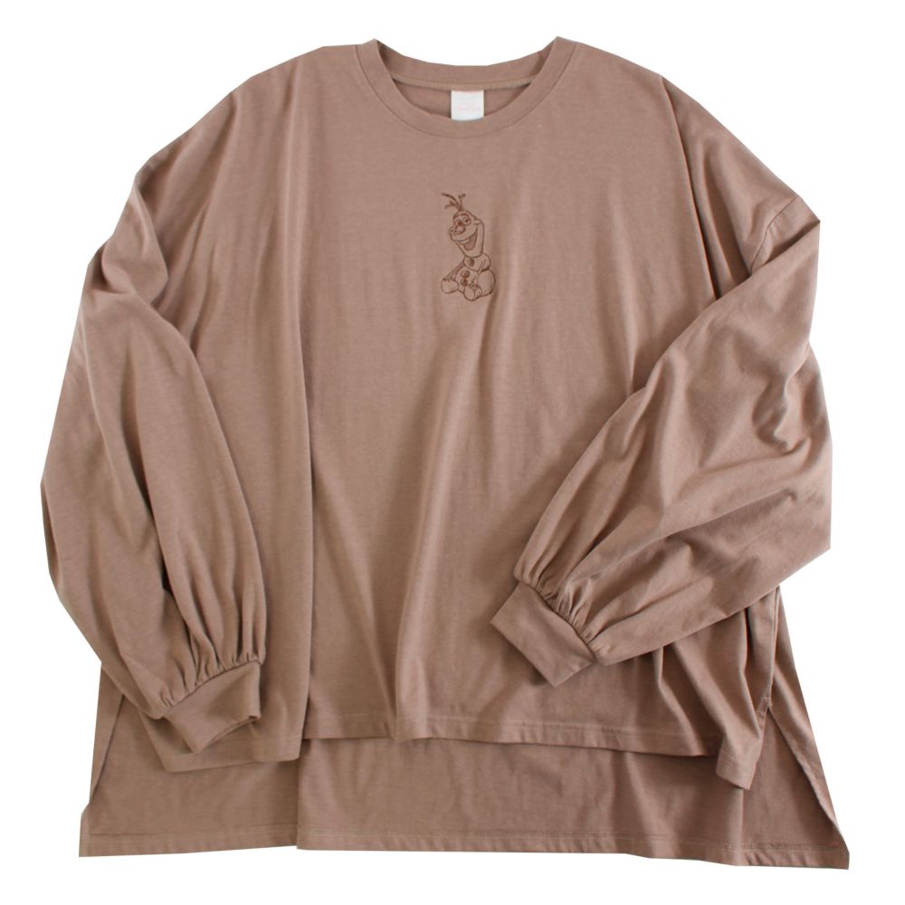 「オラフ」デザインの刺繍がフロントにあるビッグシルエットのロングスリーブトップス。