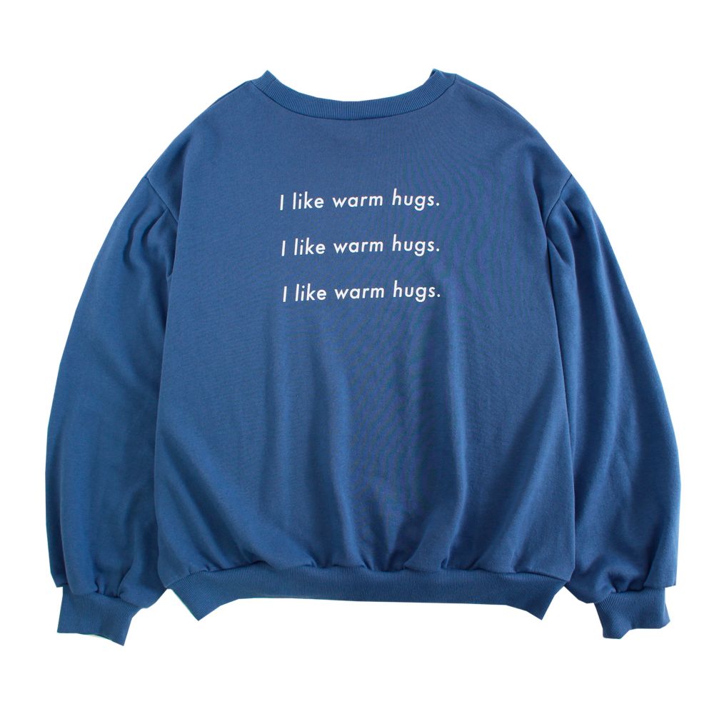 前後にシンプルなアナのデザインをあしらった、ボリュームのある袖がポイントのスウェット。