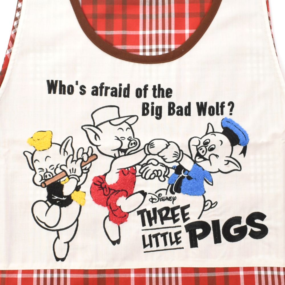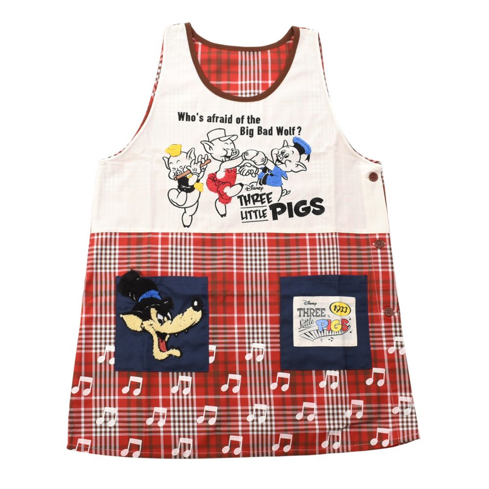 『三匹の子ぶた』に登場するファイファー、フィドラー、プラクティカル、ビッグ・バッド・ウルフがデザインされた大人用カバーエプロン。