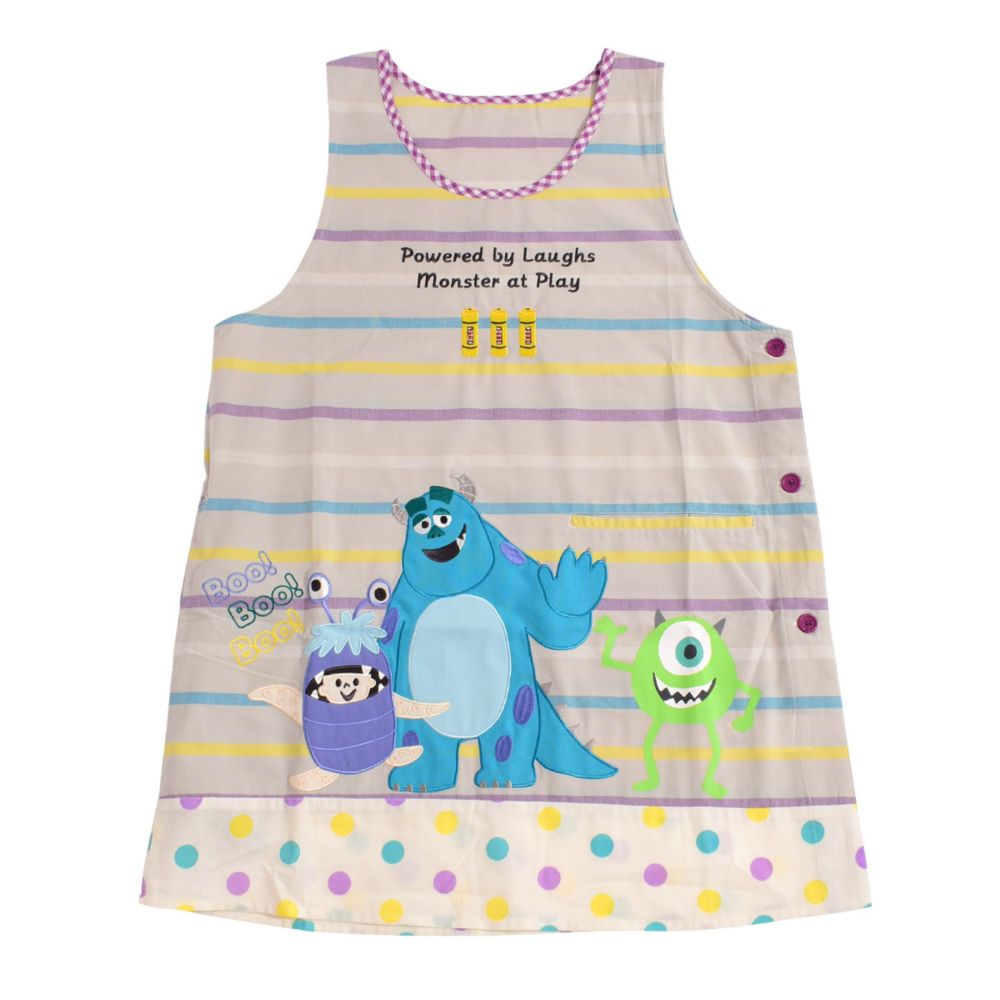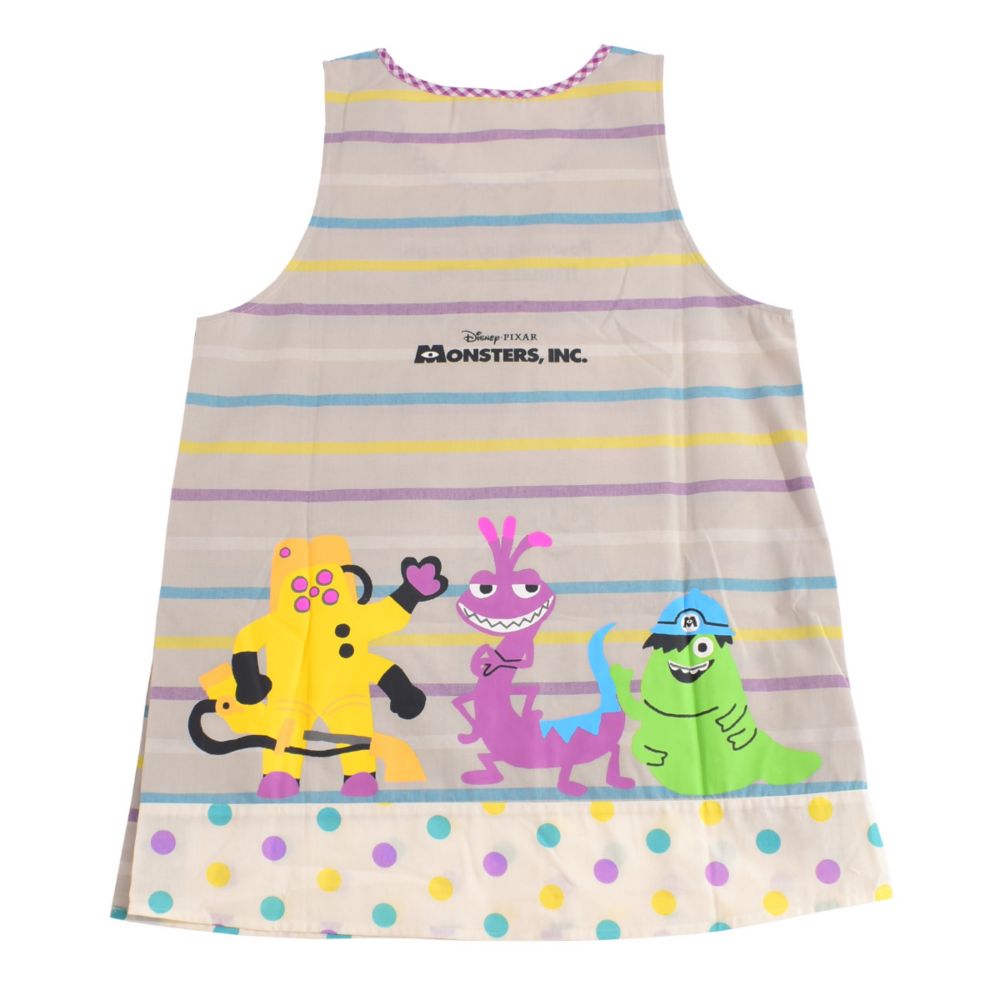 『モンスターズ・インク』に登場するマイク、サリー、ブー、ランドール、スミティ、CDAがデザインされた大人用カバーエプロン。
