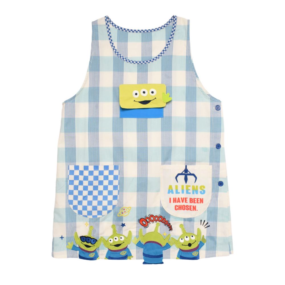 『トイ・ストーリー』シリーズに登場する「エイリアン」がデザインされた大人用カバーエプロン。