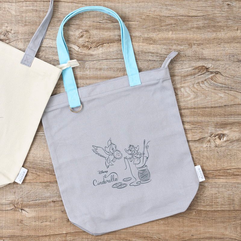 ノートパソコンもすっぽり入る縦型トートバッグに、シンデレラの、オリジナル描き下ろしイラストをデザインしました。