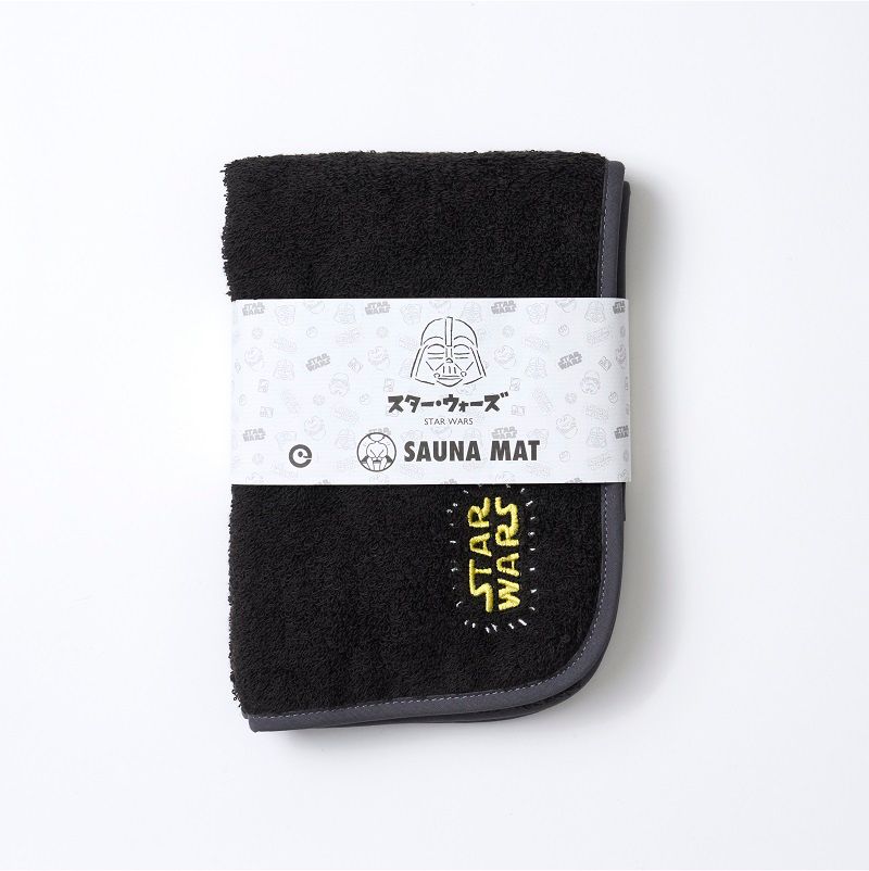 シックなブラックのタオル生地に、スター・ウォーズのロゴの刺繍がポイントのサウナマット。