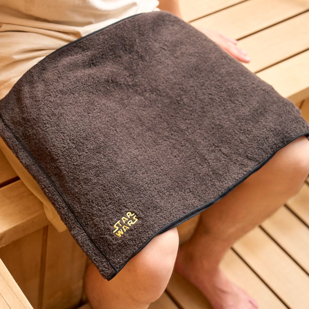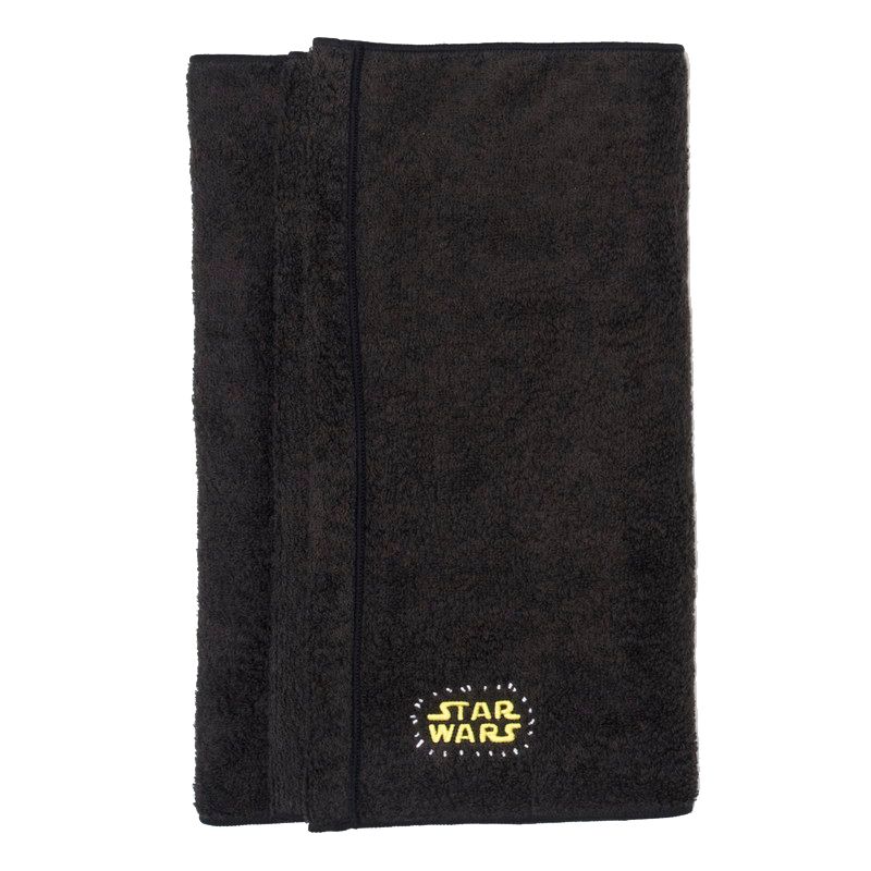 シックなブラックのタオル生地に、スター・ウォーズのロゴの刺繍がポイントの大きなハーフタオル。