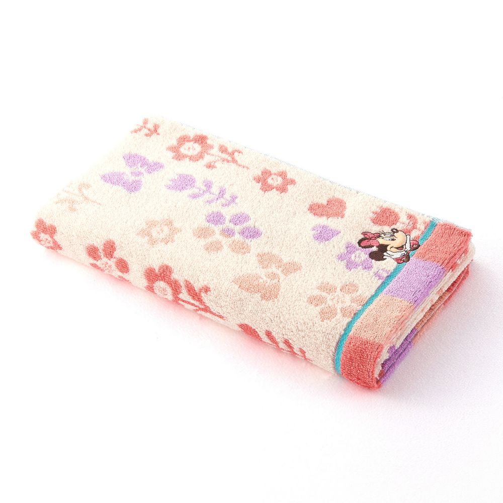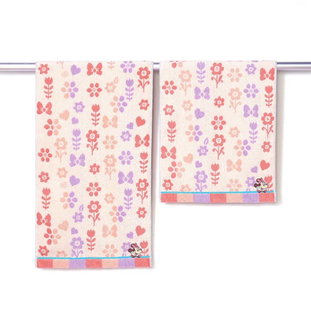 それぞれのキャラクターをイメージしたカラーに草花モチーフがタオル全体に描かれています。