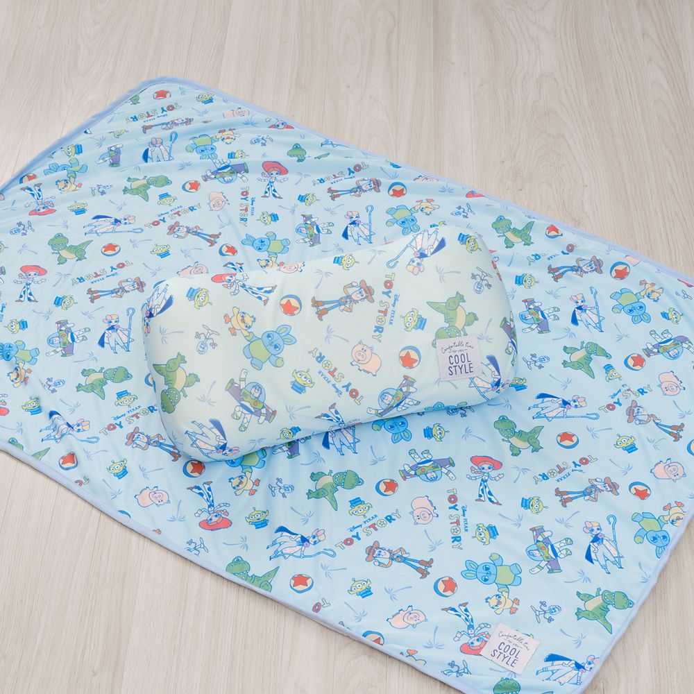ひんやり冷たい夏用ブランケット♪涼しげなブルーをベースに、人気のキャラクターを全体的にデザイン。裏面のパイル生地は肌触りがさらさら。さっと使える便利なサイズも魅力的♪