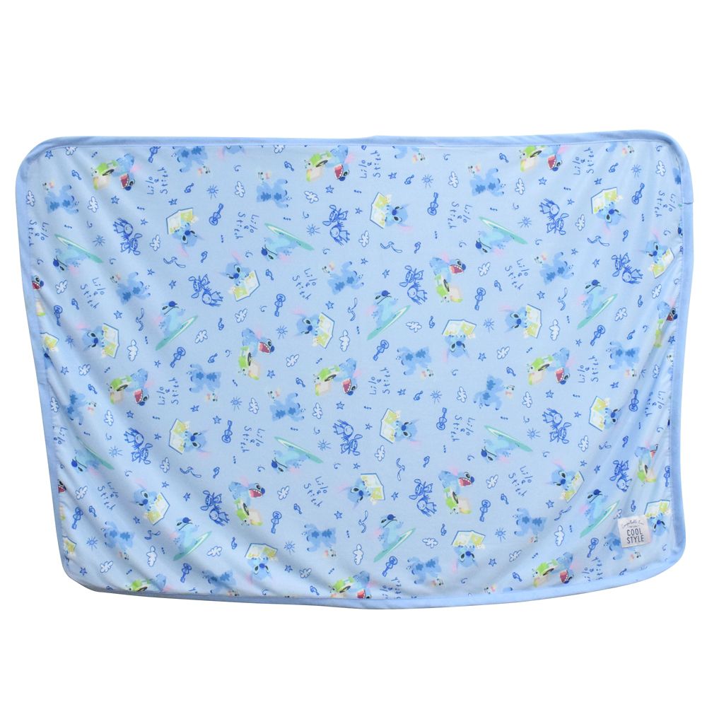 ひんやり冷たい夏用ブランケット♪涼しげなブルーをベースに、人気のキャラクターを全体的にデザイン。裏面のパイル生地は肌触りがさらさら。さっと使える便利なサイズも魅力的♪
