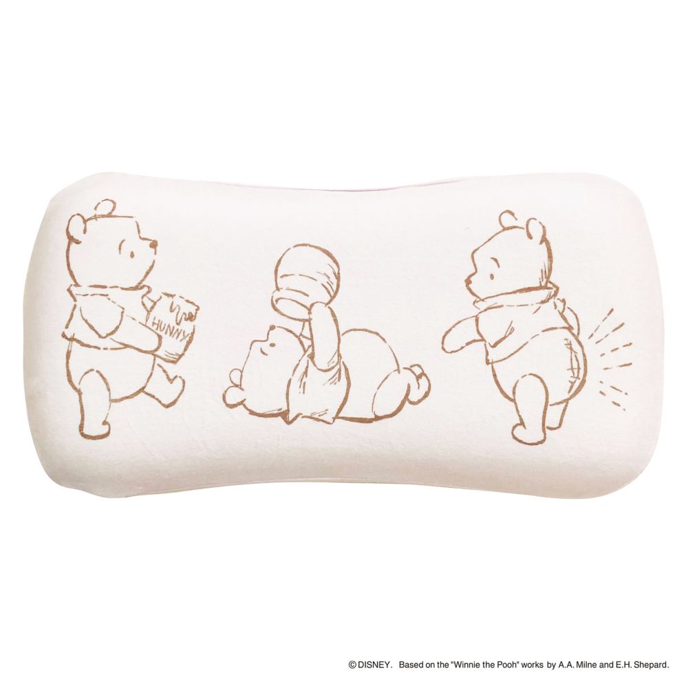 やわらかいペールトーンの色合いに、プーさんを線描きタッチでデザインしました♪表と裏の柄の違いを気分によって使い分けてもGood♪ピンクとブルーのメインカラーがとても可愛らしい♪低反発のもちもちな感触を楽しんでください!
