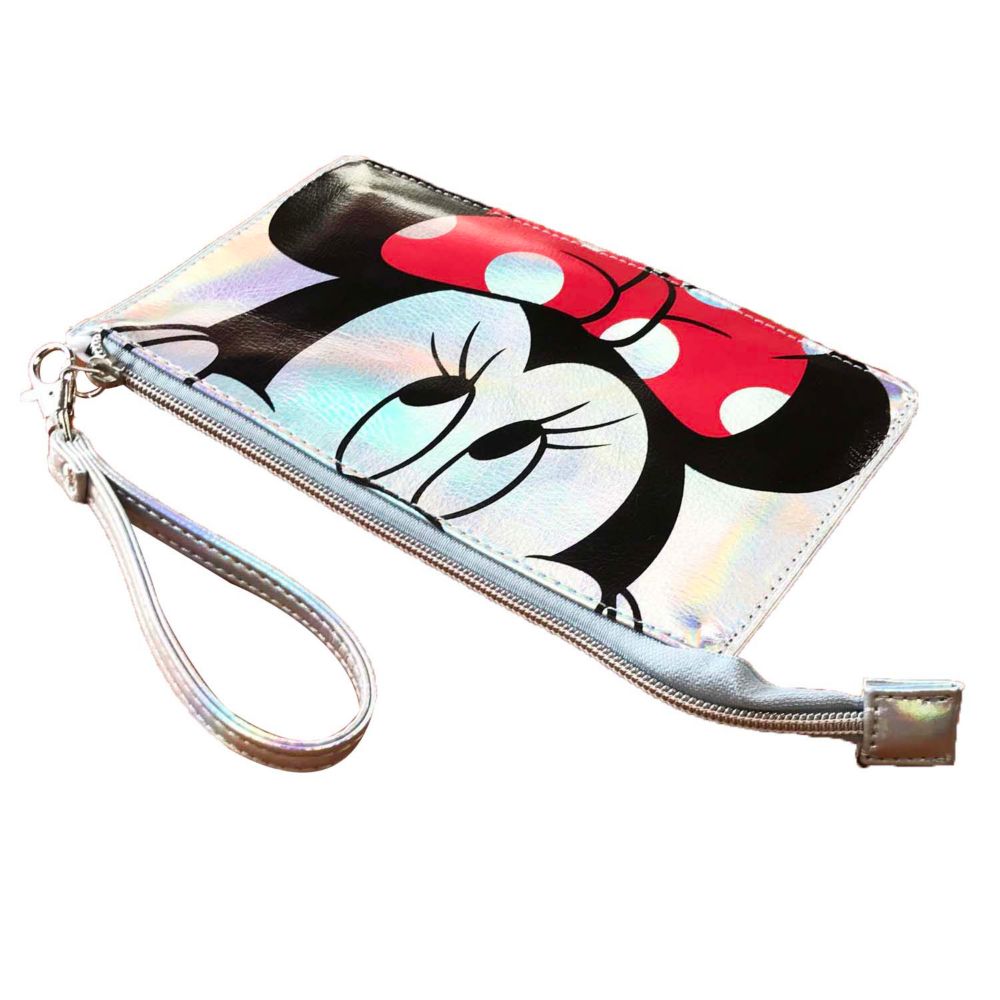 ディズニーキャラクターのホログラムポーチ。顔にポーチをあてるとキャラクターになりきれちゃう、遊び心満載のデザインです。ファスナーストラップは取り外し可能なのでクラッチバッグ感覚で使うのもOK!中の裏地もそれぞれのキャラクター仕様になってます!