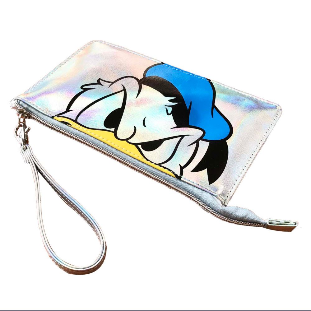 ディズニーキャラクターのホログラムポーチ。顔にポーチをあてるとキャラクターになりきれちゃう、遊び心満載のデザインです。ファスナーストラップは取り外し可能なのでクラッチバッグ感覚で使うのもOK!中の裏地もそれぞれのキャラクター仕様になってます!