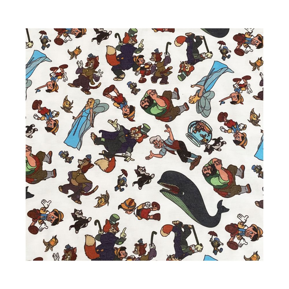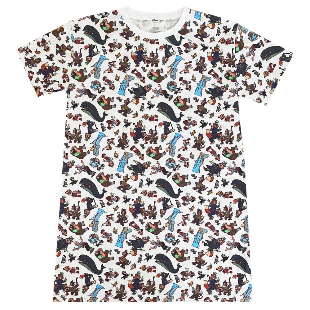 DisneyピノキオのロングTシャツ!キャラクターのパターンがギッシリ詰まった総柄デザインなので、アイキャッチになりTシャツスタイルを楽しめます。便利なロング丈なので1枚でもTシャツワンピとしても活躍します。