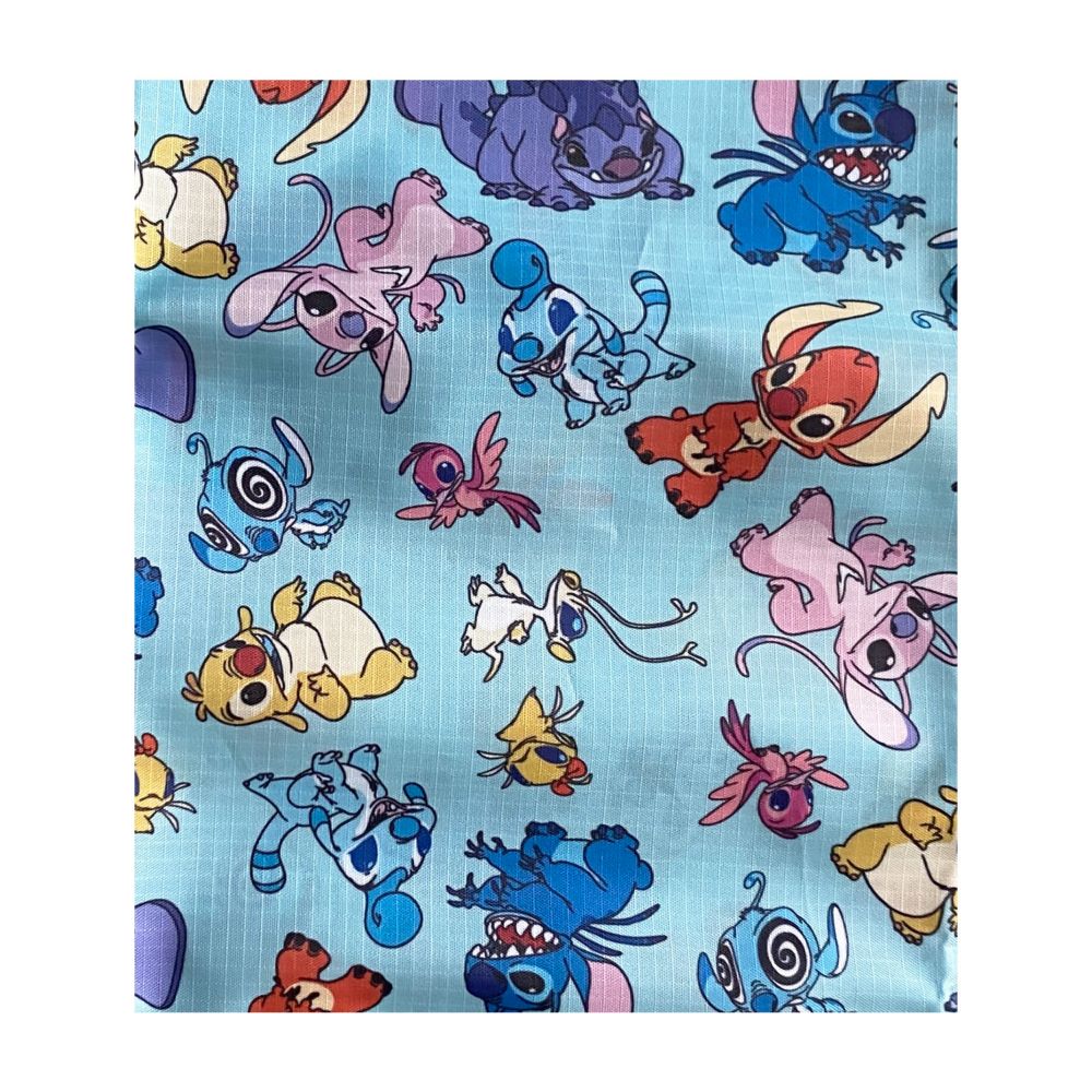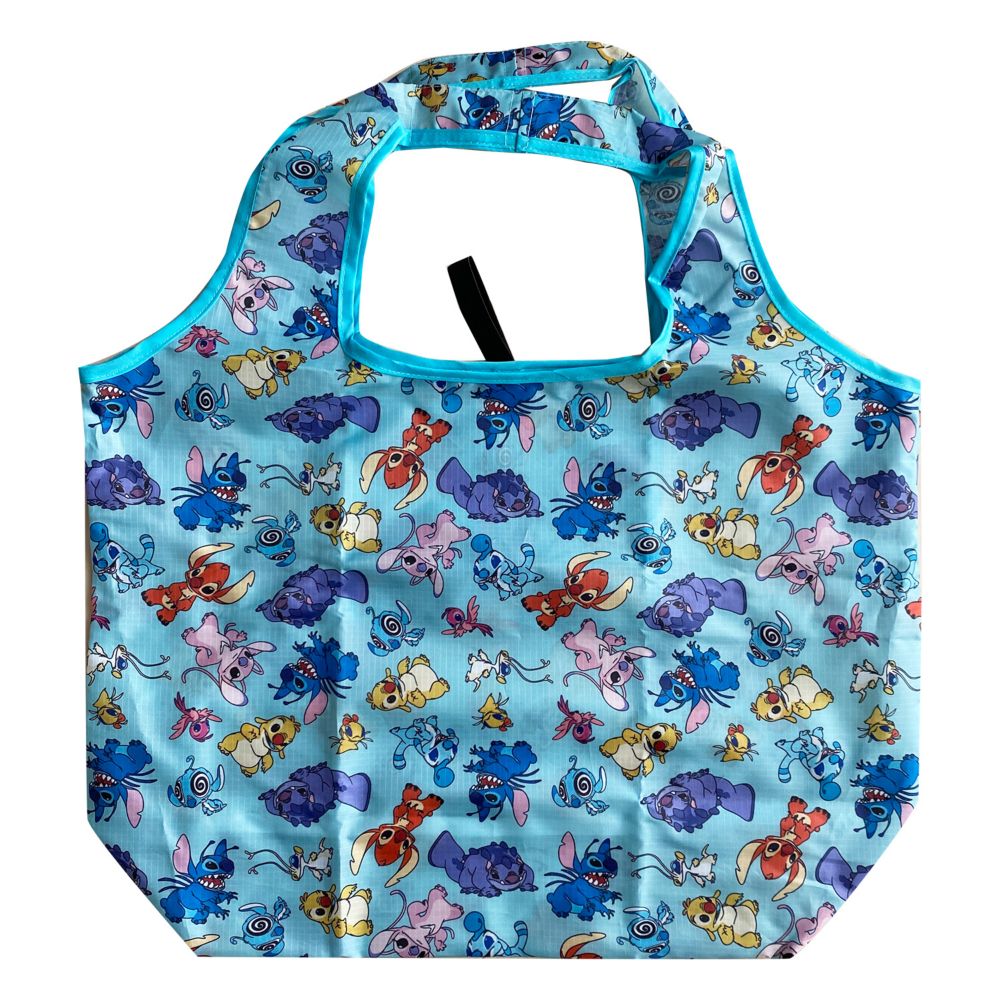 爽やかなブルーグリーンにスティッチたちがプリントされた、持っているだけで楽しくなるエコバッグです。底マチもあり、レジ袋の代わりなどにもピッタリ。使わない時はクルクルたたんで同じデザインの小さい収納袋に入れる事ができてとっても便利。軽い素材なので気軽にバッグに入れておけます。