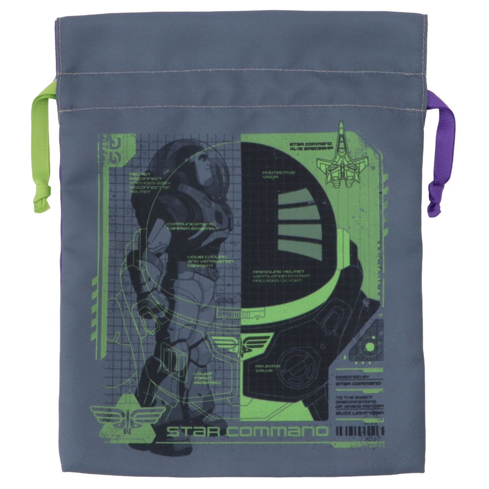 バズ・ライトイヤーのトラベル巾着♪小物入れに最適なリボン結びデザインで、バッグの中身を整理するのにもピッタリ。バズ・ライトイヤーファンには必見のアイテム!ちょっとしたプレゼントとしてもオススメです。