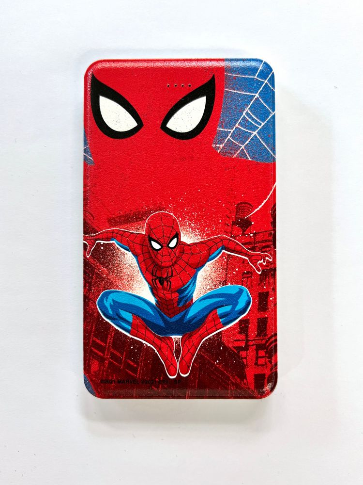 MARVEL「スパイダーマン」ノー・ウェイ・ホームのモバイルバッテリーが登場。スパイダーマンのジャンプした姿が描かれたデザイン。iPhone用のコネクタが内蔵されているのでケーブルを別で持ち歩かなくてよいのが便利。microUSBなど いろんなケーブルと繋げられます。MARVELファンには必見のアイテムです♪