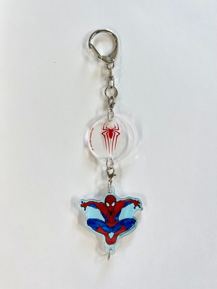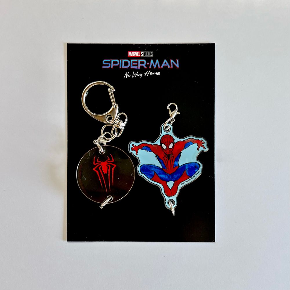 MARVEL「スパイダーマン」ノー・ウェイ・ホームの連結アクキー。歴代スパイダーマンとクモアイコンが1つに連結されたアクリルキーホルダーです。鍵につけるのはもちろん、バッグなどに付けてもアイキャッチなワンポイントに!スパイダーマン好きにはたまらないアイテムです。