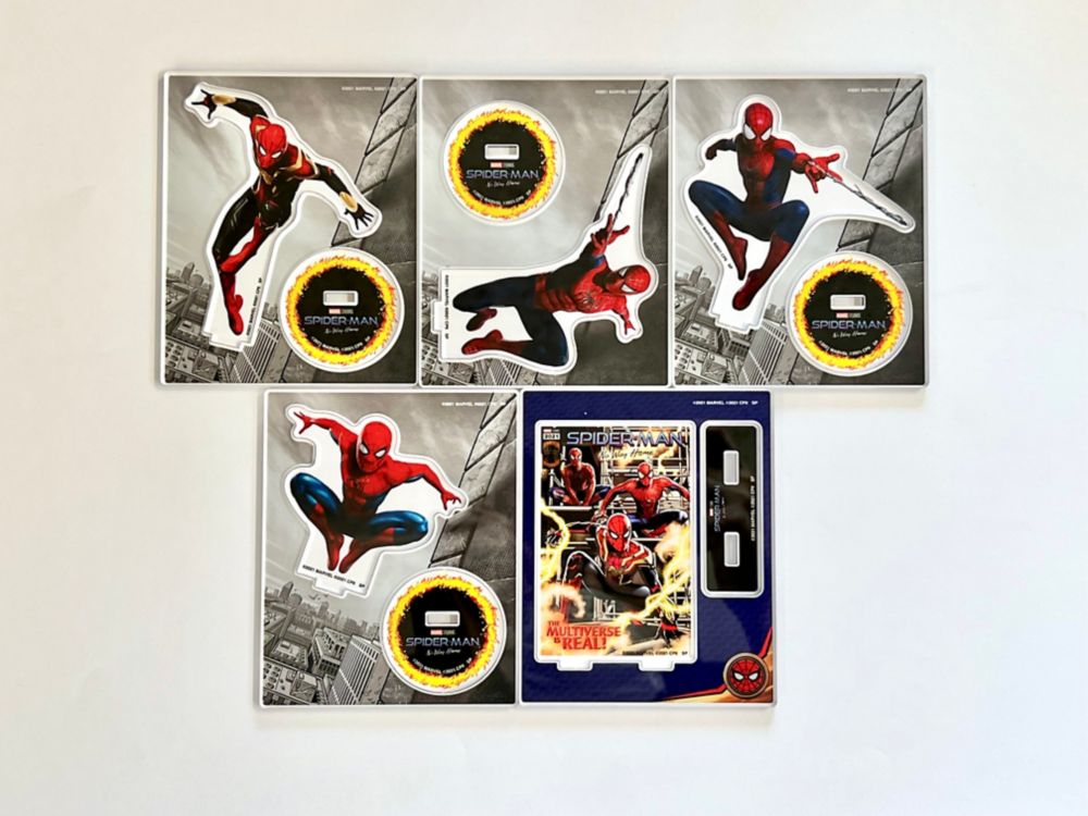 歴代スパイダーマンのアートを使った新グッズのアクリルスタンドです。インテリアとして部屋に並べてみてもオシャレな演出になります。