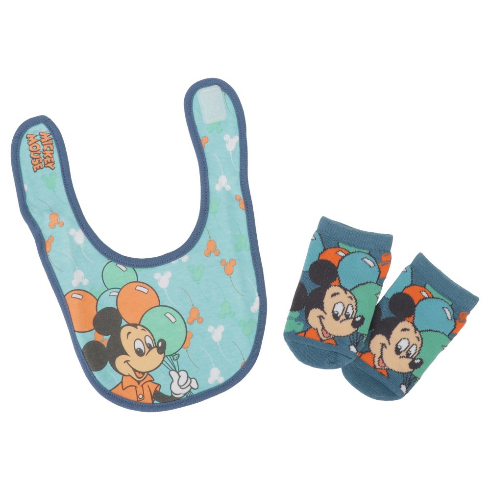 ディズニーキャラクターのベビーセット。ベビービブ(スタイ)よだれかけとベビーソックスのセットです。いろいろなデザインがあるので、複数枚セットもオススメ。スタイは日々使うので、ギフトに何枚あっても嬉しい必需品です。赤ちゃんやお子様にも安心、ホルマリン検査済(合格)です!(密封してあります)ソックスもお揃いでかわいいデザインです。