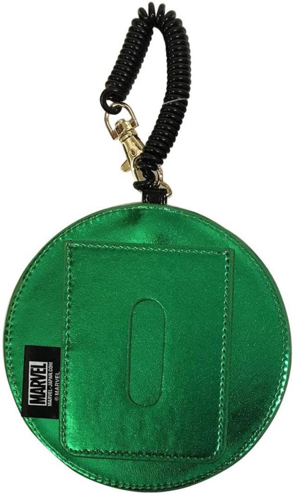 マーベル 「ロキ」アイコンのオシャレなパスケース♪グリーンの光沢感ある素材がポイント。ストラップがついてるからバッグに付けてささっと出しやすく便利です。