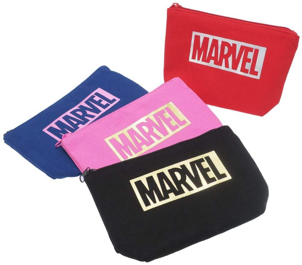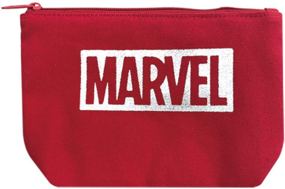 MARVELロゴのグッディポーチ。マチ巾が約6cmあるのでカバンの中でかさばる小物の整理にピッタリです。メイク道具等をいれてコスメポーチとして使うのももちろん、ペン等も楽々はいるのでペンポーチとしてもGOOD。(ファスナー付)