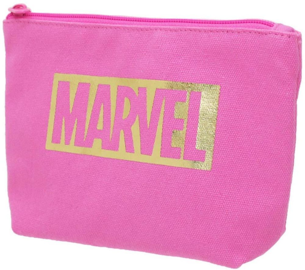 MARVELロゴのグッディポーチ。マチ巾が約6cmあるのでカバンの中でかさばる小物の整理にピッタリです。メイク道具等をいれてコスメポーチとして使うのももちろん、ペン等も楽々はいるのでペンポーチとしてもGOOD。(ファスナー付)