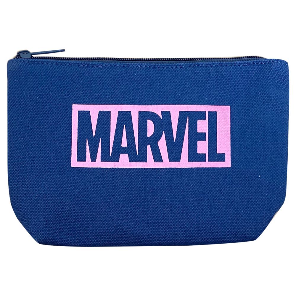 MARVEL ボックスロゴのグッディポーチ。マチ巾が約6cmあるのでカバンの中でかさばる小物の整理にもピッタリ。メイク道具等をいれてコスメポーチとして使うのはもちろん、ペン等も楽々入るのでペンポーチとしても便利です。
