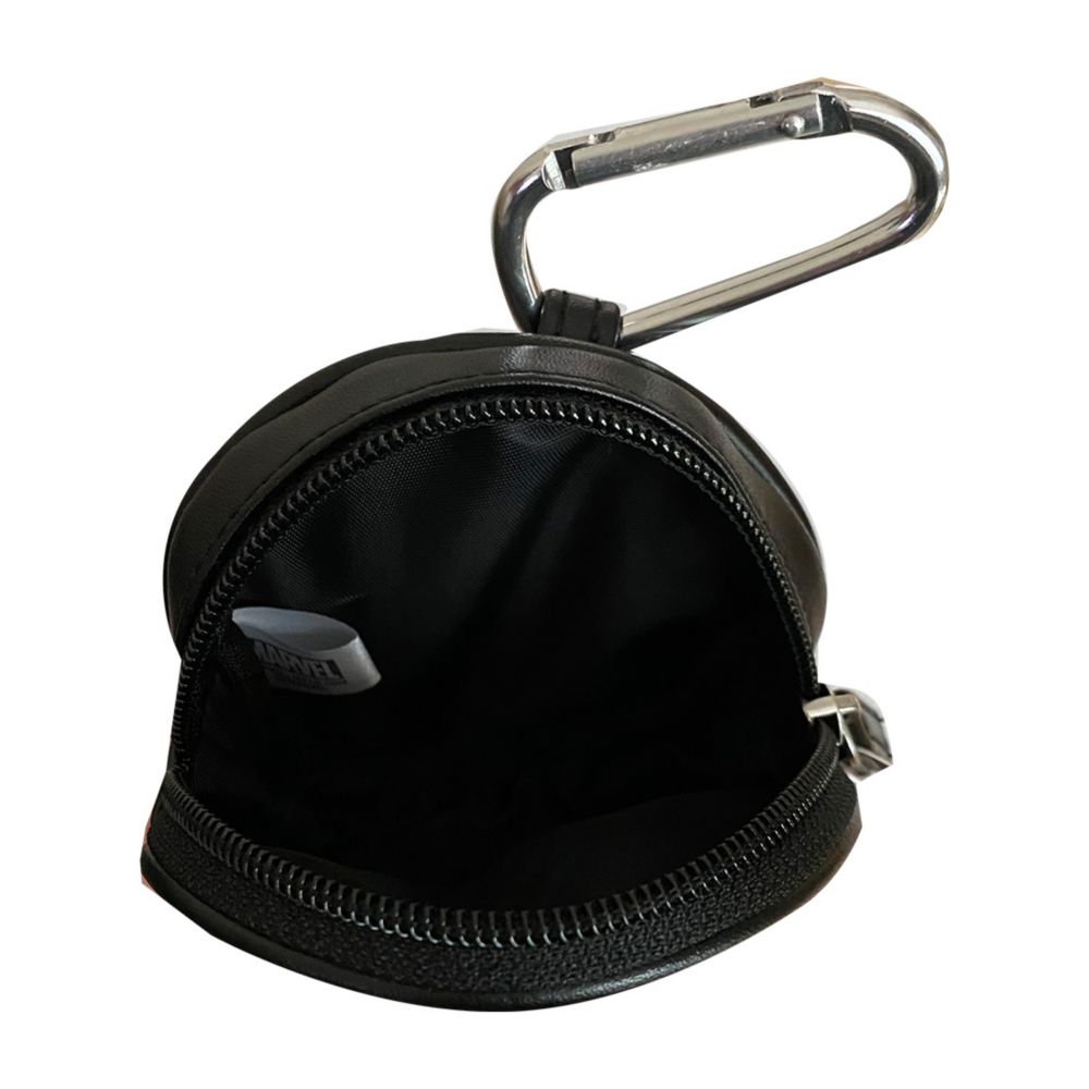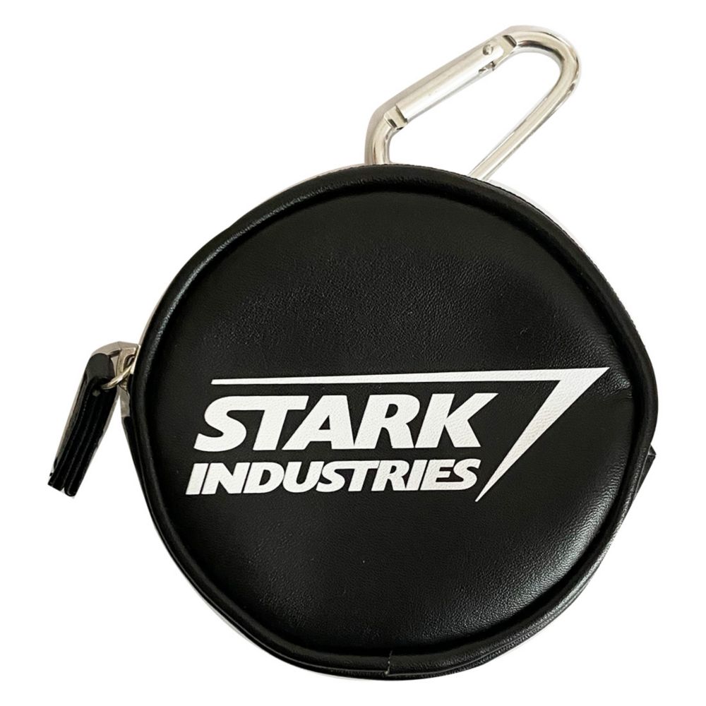 MARVELカラカラナビ付ポーチ。スターク・インダストリーズと、アイアンマンのアークリアクターのデザインにシルバーのデザインがとてもカッコいいポーチ。カラビナ付で、ベルト通しに下げたりと便利に使えます。