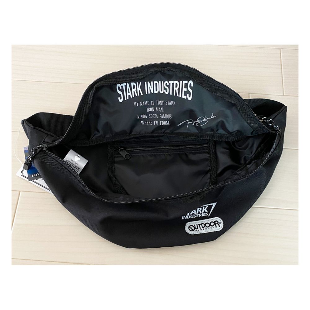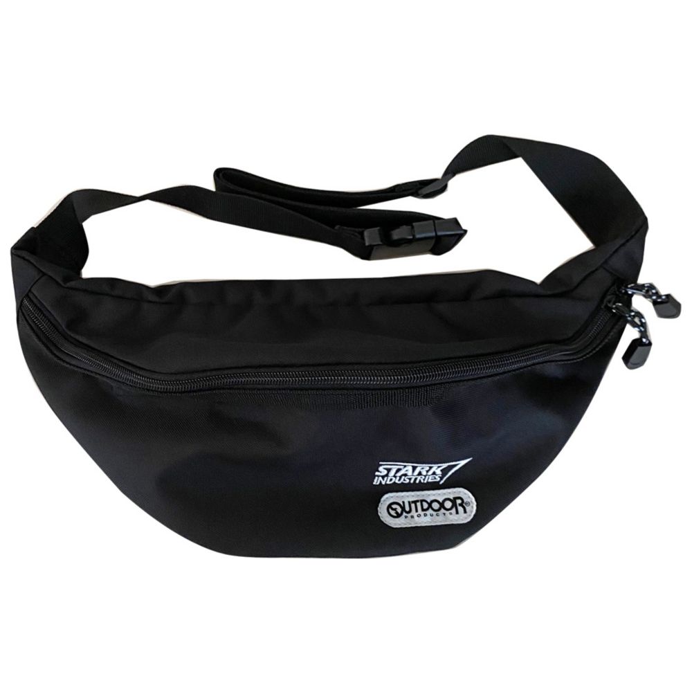 MARVEL×OUTDOOR PRODUCTSの、ボディーバッグ。丈夫な素材で摩擦やスリ切りにも強く、優れた耐久性が特徴で収納もしっかりできて、シンプルでクールなデザイン。両手が使えて便利なウエストバッグは男女問わず使えます。