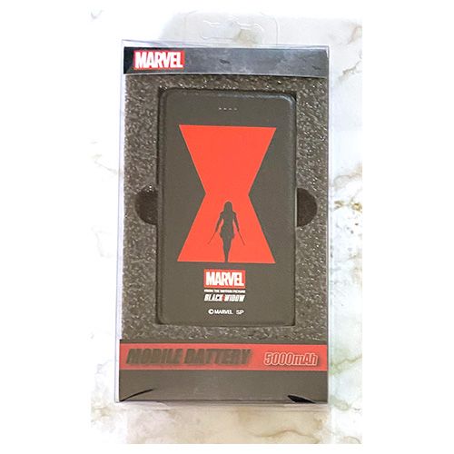 MARVEL ブラックウィドウのモバイルバッテリーが登場!iPhone用のコネクタが内蔵されているのでケーブルを別で持ち歩かなくてよいのが便利!microUSBなど いろんなケーブルと繋げられて便利です。