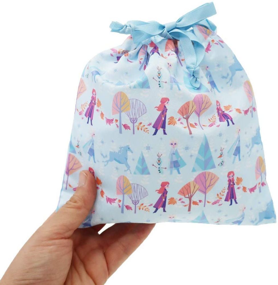 ディズニーアニメーション映画『アナと雪の女王2』より、かわいい巾着が登場。光沢のあるサラッとした触り心地の良い素材です。小物をまとめたりポーチにしたり、お子様用のコップ袋にも◎ 使い道はいろいろ♪