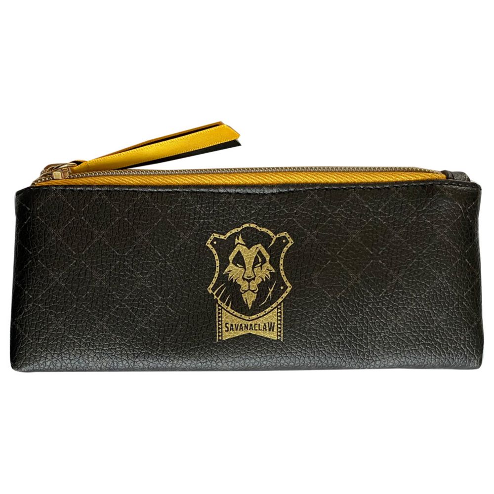 大人気スマホゲーム、【ディズニー ツイステッドワンダーランド】の公式ライセンス商品です。黒地にゴールドの寮章がおしゃれな、合皮のフラットペンポーチです。引き手には、寮カラーのサテンリボン付き。推しの寮をさり気なく皆にアピールしちゃいましょう!