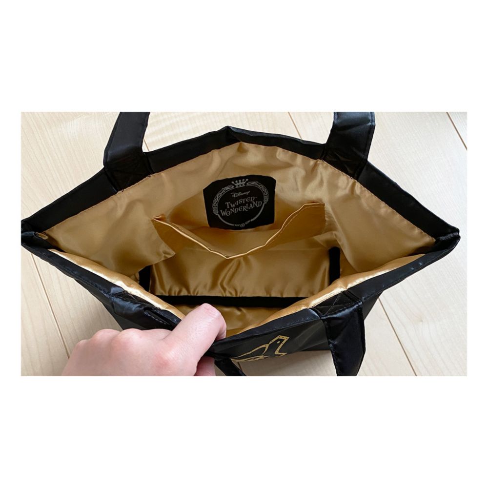 大人気スマホゲーム、【ディズニー ツイステッドワンダーランド】の公式ライセンス商品です。サテン生地に、寮章のゴールドプリントがオシャレなランチバッグ。内側もサテン生地で、ポケットにはネーム付き。マチありで、ちょっとしたお出かけにもちょうど良いサイズのバッグです。