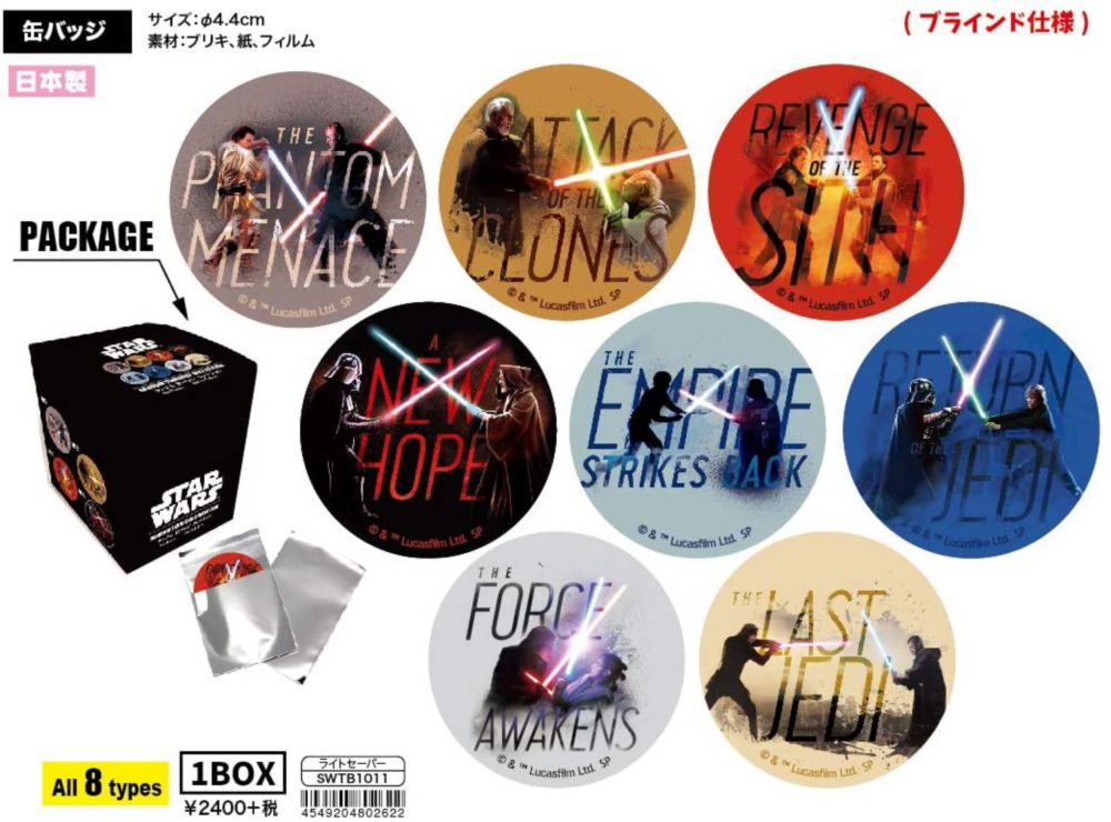 スター・ウォーズ 缶バッジ コレクション 『ライトセーバー』全8種、ブラインド仕様。本商品はBOXのみの販売となります。1BOXで全種類が揃います。