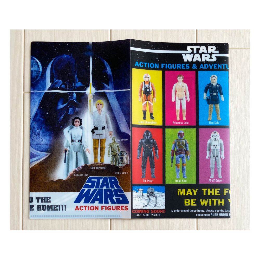 スター・ウォーズのフィルムとフィギュアのマスクケース。見開きで、両サイドのポケットに収納可能です。コンパクトサイズで、バッグに入りやすく持ち運びに便利。抗菌素材PPで清潔→使用中のマスクの保管軽くて薄いのでかさばらず持ち歩けます。