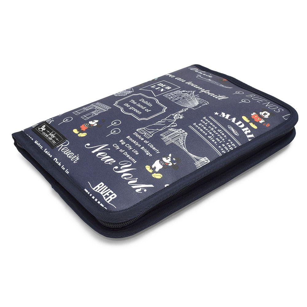 ファスナーで周囲をしっかりと開閉できるタイプで、中身を落とす心配がありません。Mサイズの母子手帳(タテ約18.2cm×ヨコ約12.8cm)に対応しています。