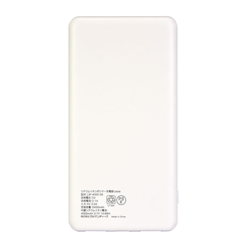 電池容量は4000mAhで、2.1Aの急速充電に対応しています。