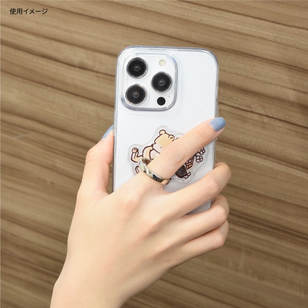 リングに指を通すことでスマートフォンの持ちやすさを向上し、落下を防止します。