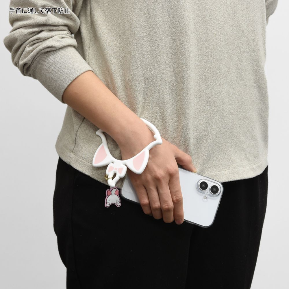 シリコーン素材のブレスレットが付属しており、スマートフォンをファッショナブルに持ち歩くことができ、落下防止にも役立ちます。