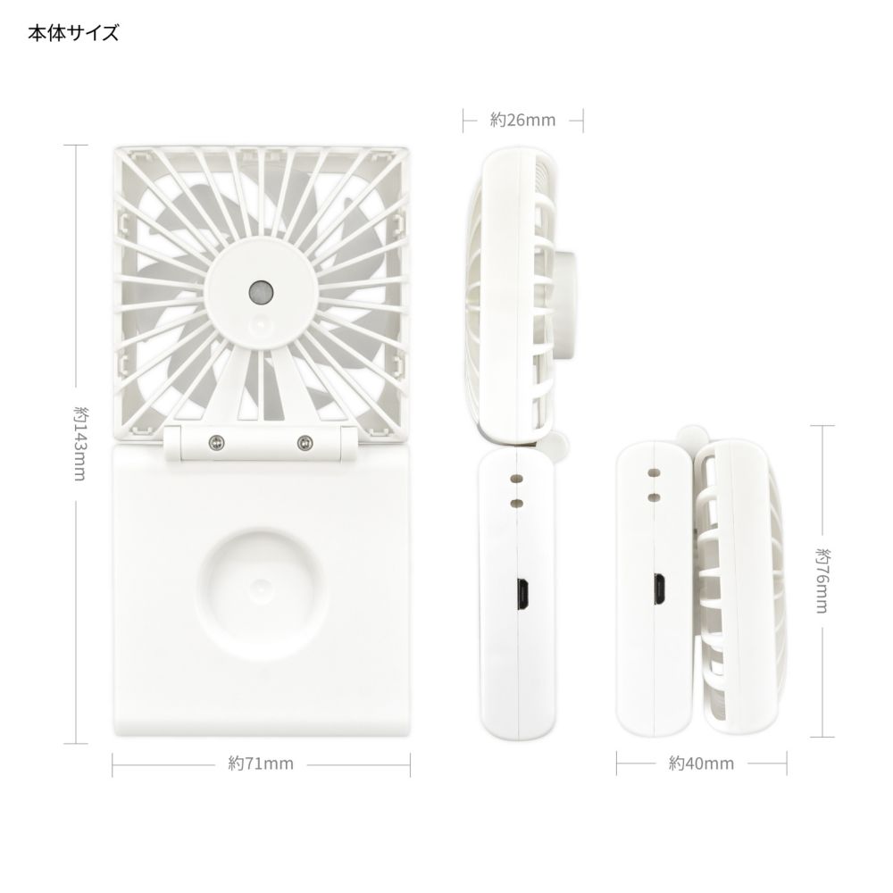 本体サイズ:(開いた状態)H143mm×W71mm×D26mm、(閉じた状態)H76mm×W71mm×D40mm