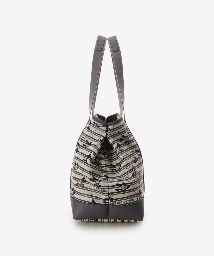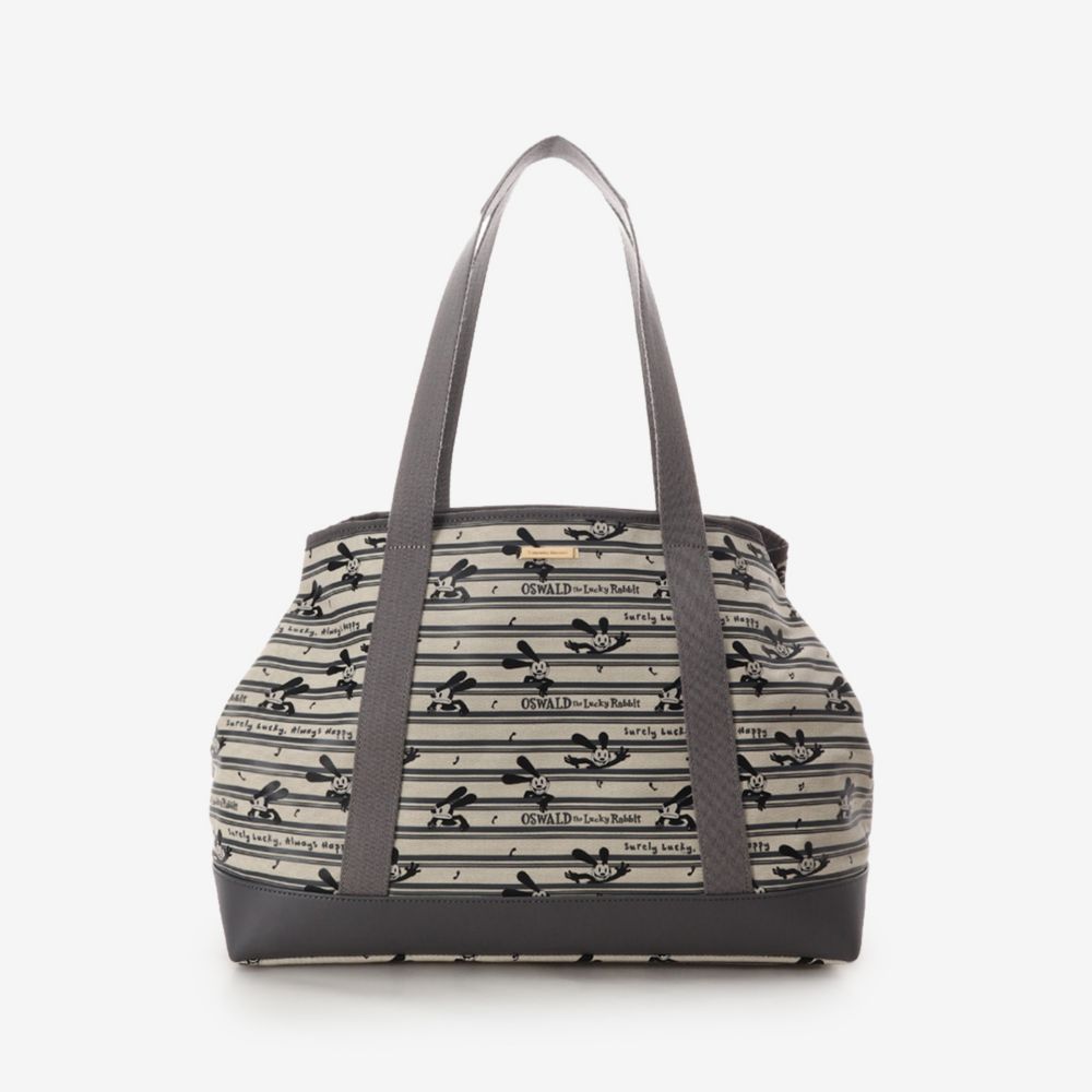 「オズワルド」の総柄アートが印象的なトートバッグ。音楽が奏でられそうな音符のアートに手を振っている姿や怒っている様子の「オズワルド」の様々な表情に注目のデザイン。
