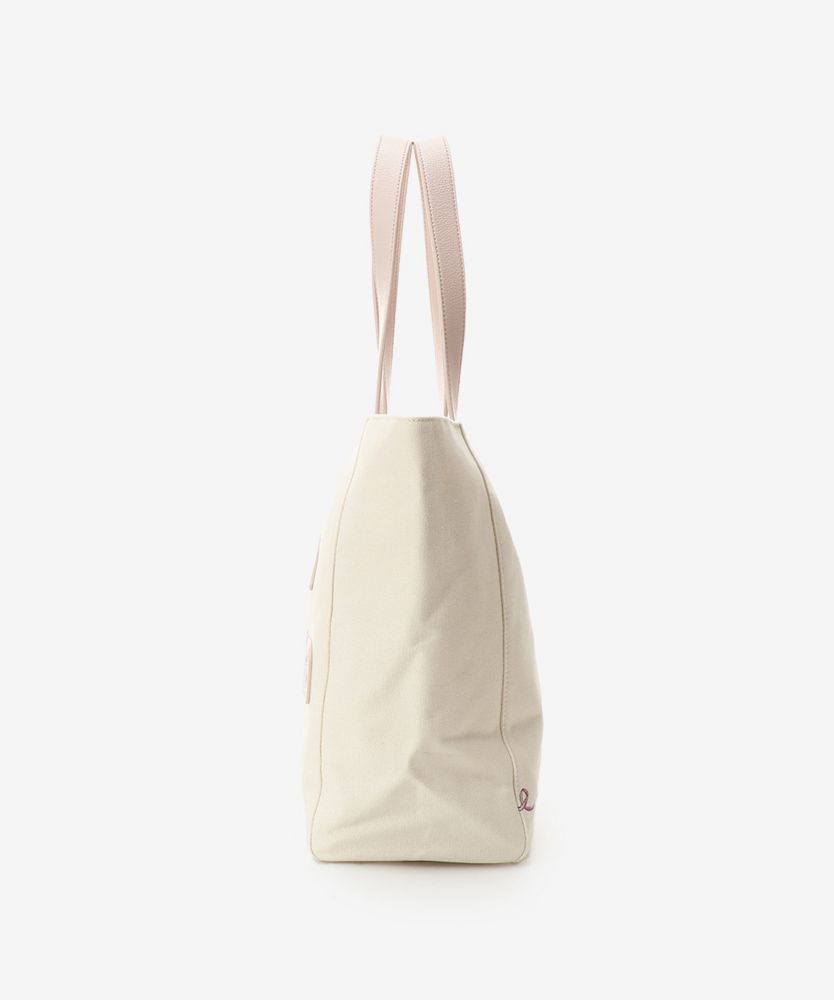 「マリー」を表現したホワイトカラー×リボンをイメージしたピンクカラーのロゴがポイントのシンプルで持ちやすいトートバッグ。
