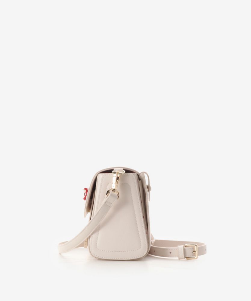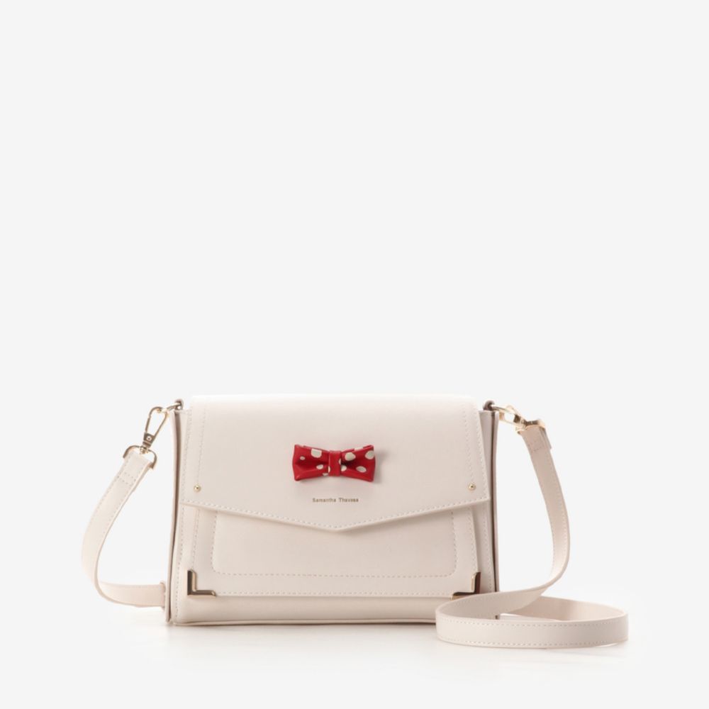 ホワイトカラーに「ミニーマウス」をイメージしたドット柄のリボンがアクセントのショルダーバッグ。