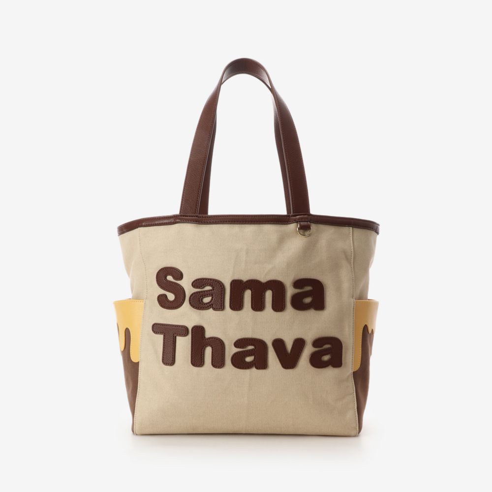 両面で使用できるトートバッグは、片面には「pooh」のパッチワークデザインでどこから見てもキャラクターの雰囲気を存分に楽しめるシリーズ。