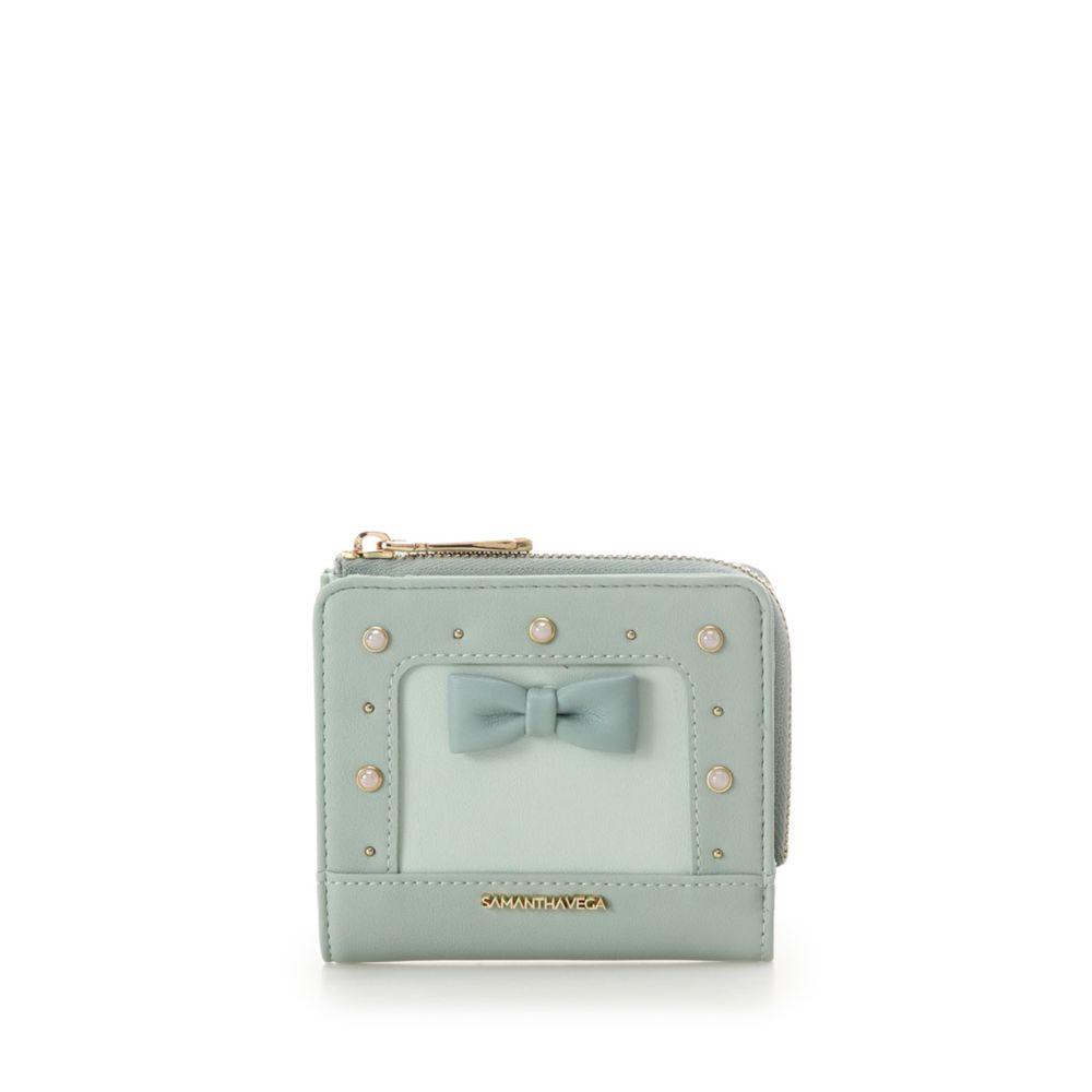 バッグのデザインとリンクしたお財布はファスナータイプの2つ折りタイプ。
