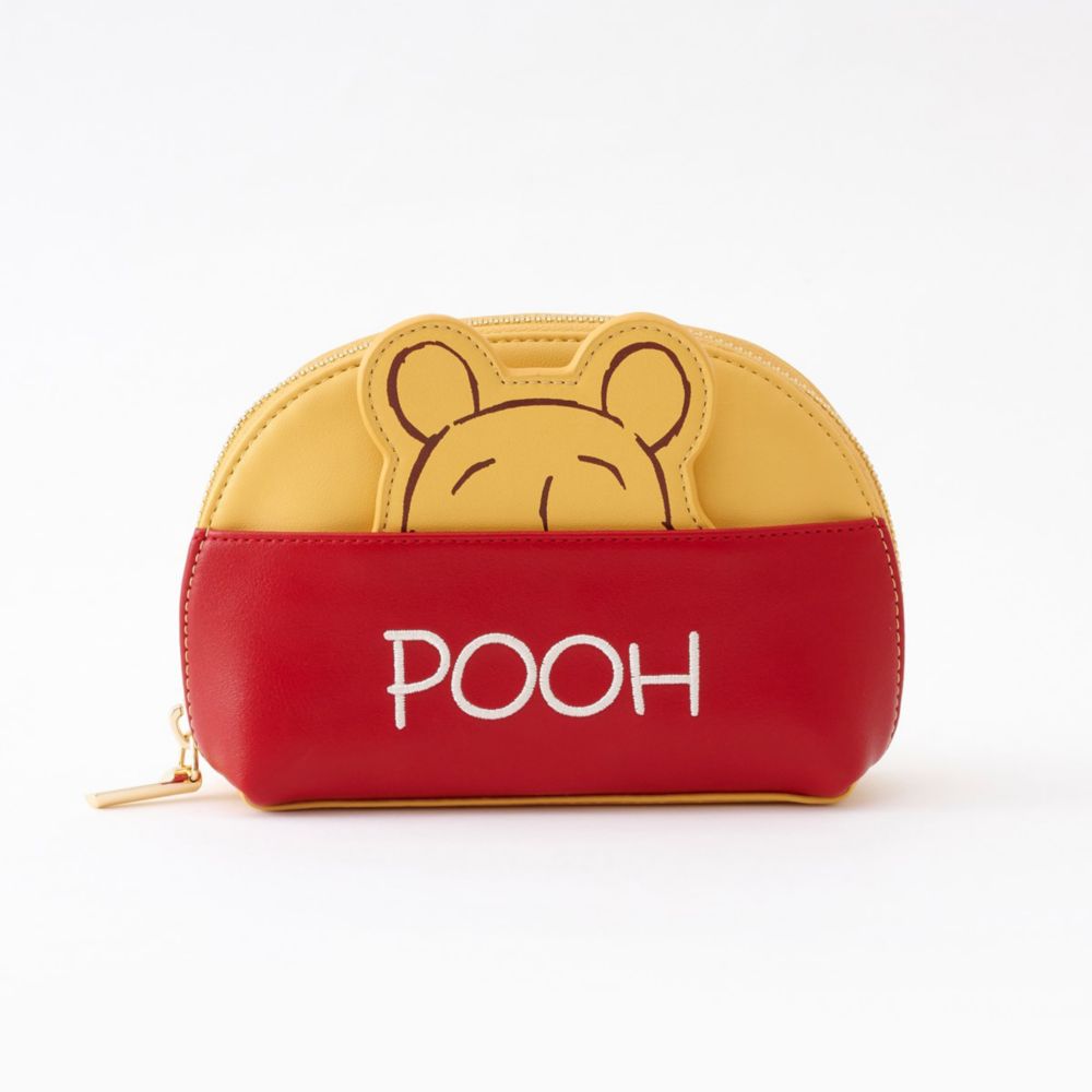 ポーチのポケット部分は「プーさん」のお洋服をイメージしたレッドカラーになっていて、ミラーを収納できるデザインになっています。
