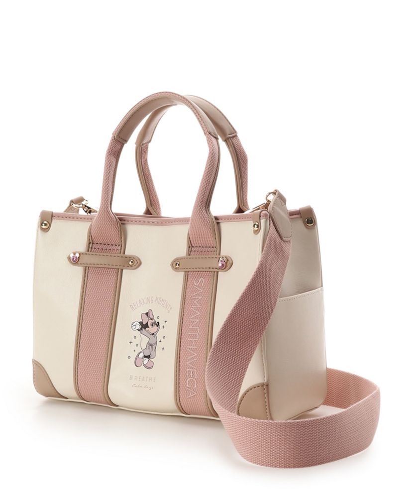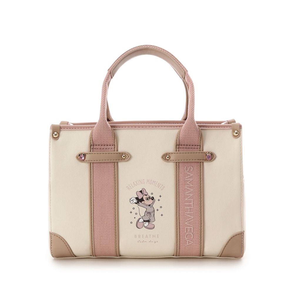 ・バッグはトランクをイメージしたベルト風デザインで、リラックスをテーマに「ミッキーマウス」「ミニーマウス」がリラックスしているサマンサベガオリジナルのアートがポイント