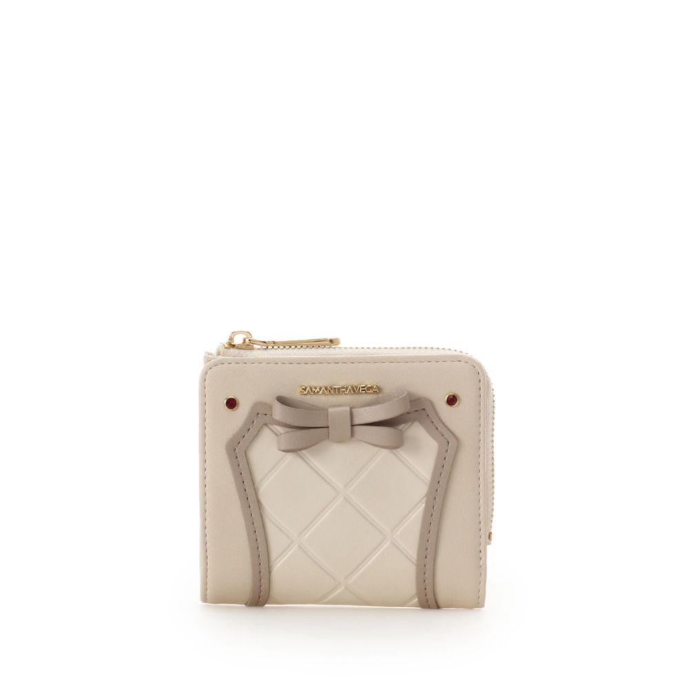 ・バッグのデザインとリンクしたお財布。立体的なリボンとキルティングの型押しが可愛いらしいデザイン。