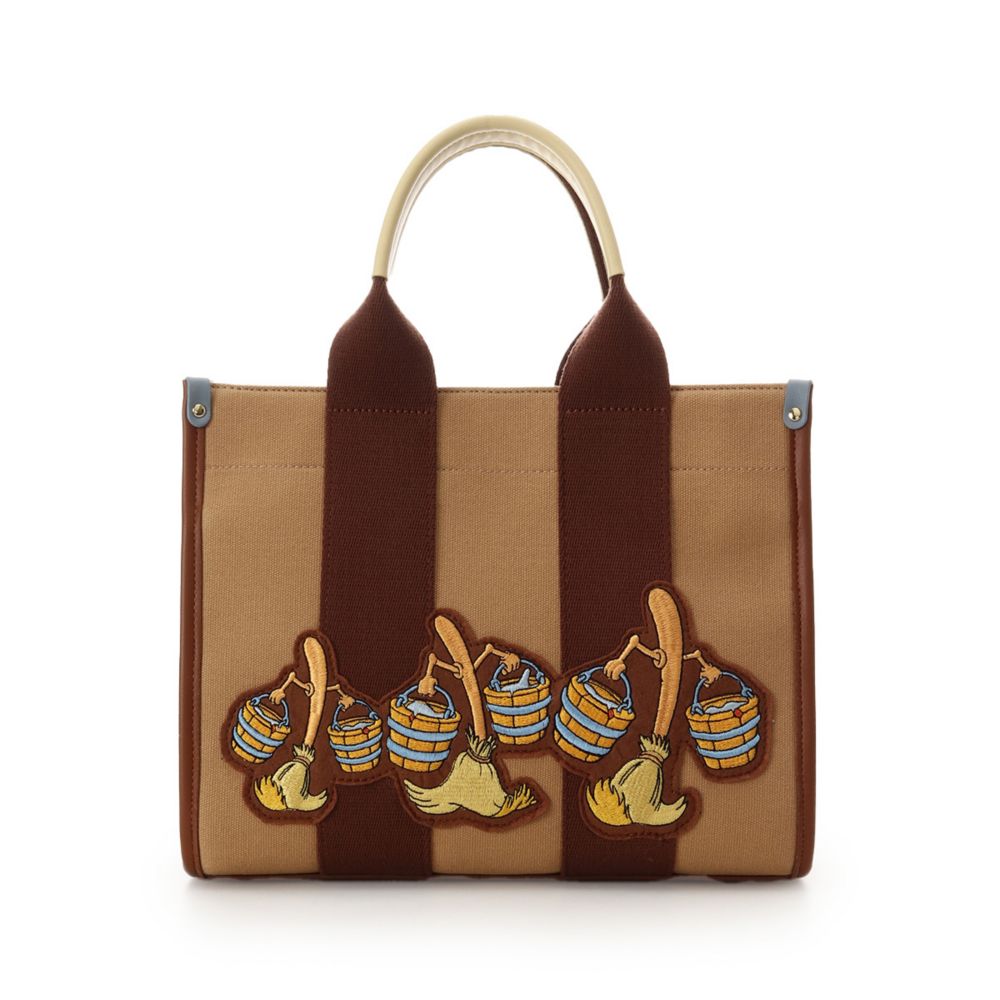 「ミッキー」の魔法にかけられて水汲みをしている、ほうきのアートをデザインしたトートバッグ。